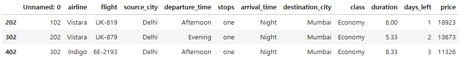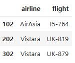 flight.iloc[[102,202,302]] #iloc은 행 기준